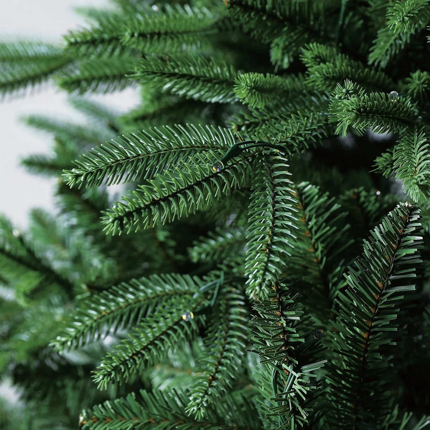 - Measures at 7ft (2.1m approx.) tall with 51″ (1.30m) diameter base; features 2,962 branch tips