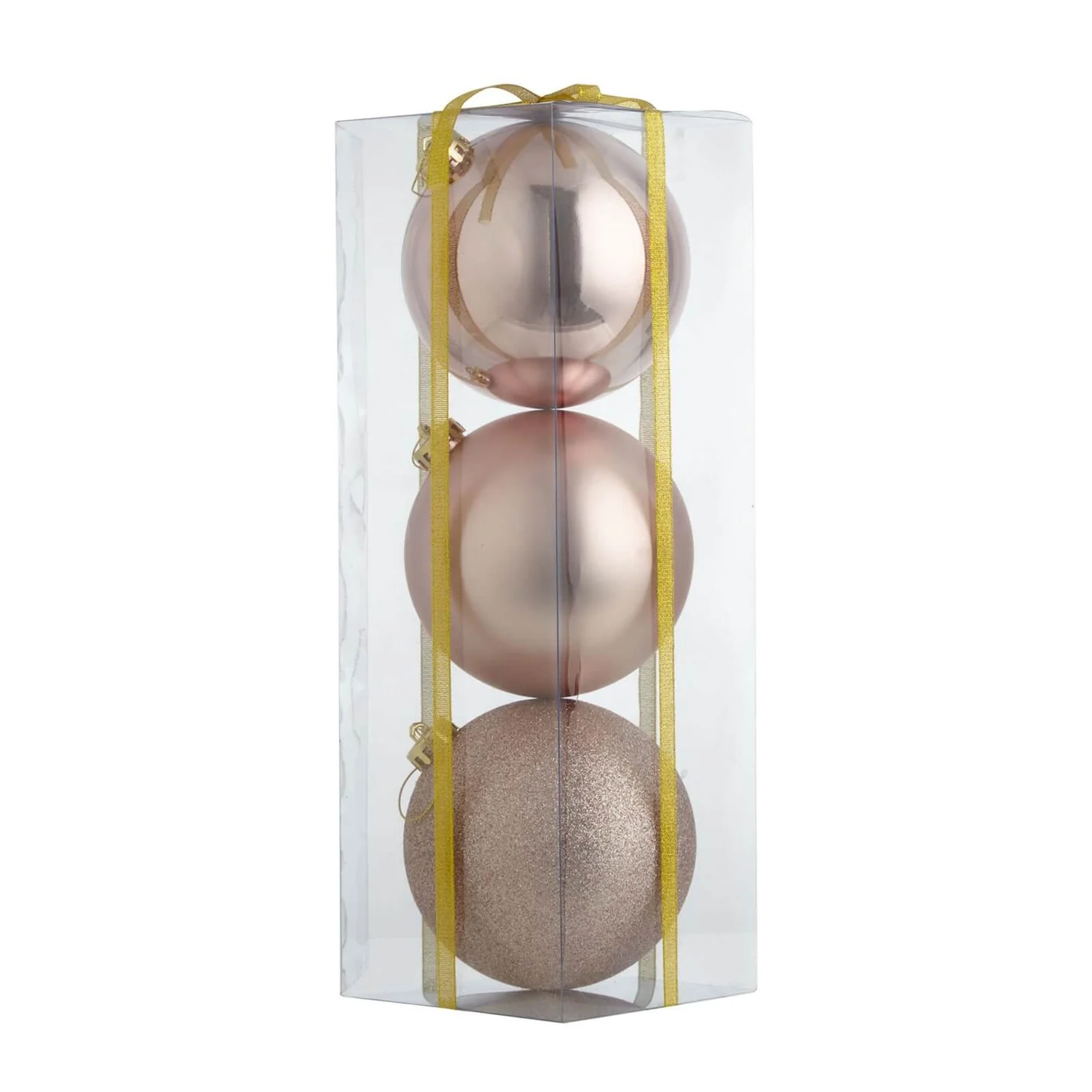 Bigger is better. Decorate your tree for years to come with this 3-pack of shatterproof baubles. In a pretty rose pink and 3 different finishes, these beautiful baubles will add a timeless touch to your tree.
